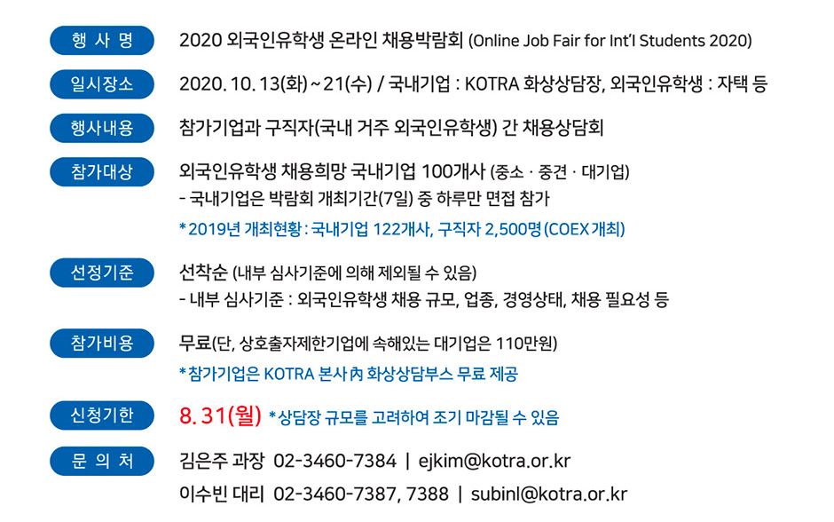 [KOTRA] 2020 ¿Ü±¹ÀÎÀ¯Çлý ¿Â¶óÀΠä¿ë¹Ú¶÷ȸ¿¡¼ ¿ì¼öÇÑ ÀÎÀ縦 ¸¸³ª¼¼¿ä!